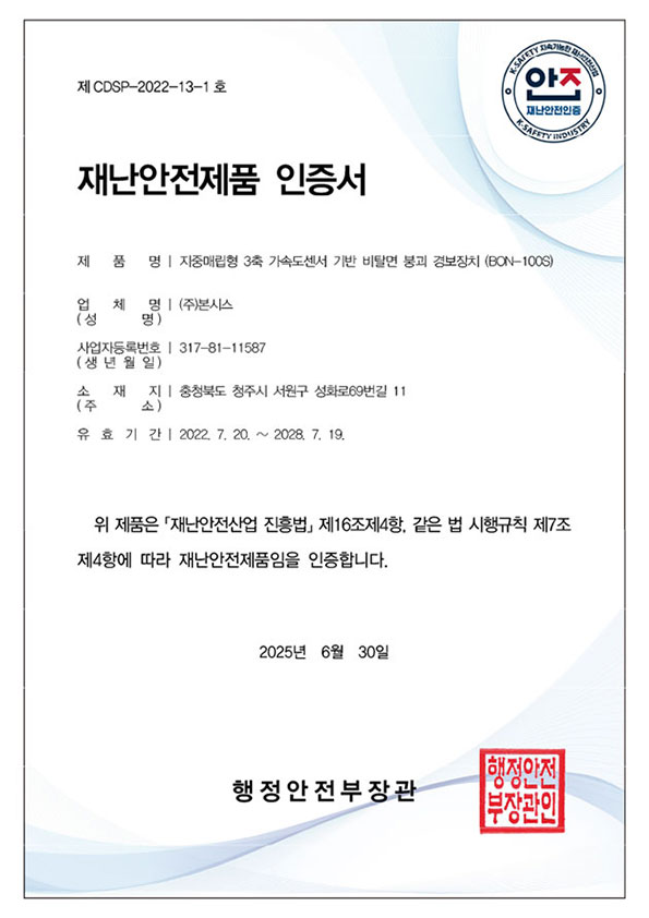 특히 해빙기 또는 우기시에 더욱 발생 가능성이 높은 붕괴의 위험성을 감지하여, 인명피해 발생을 최소화토록 하는 재난방지시스템입니다.
