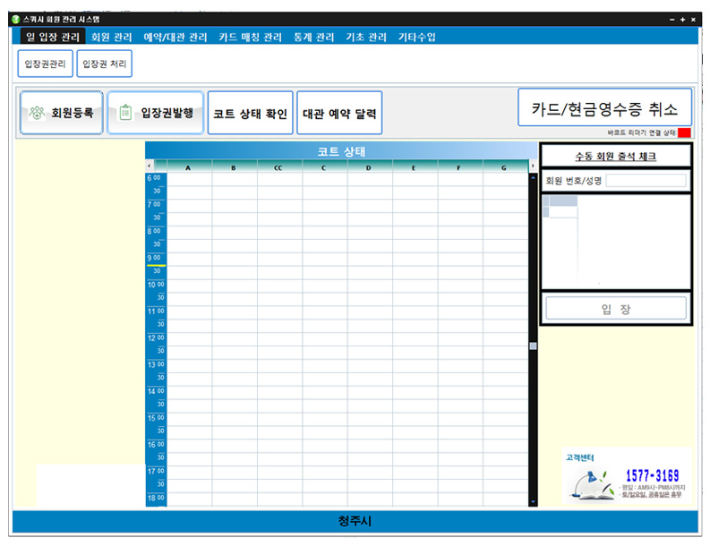 체육시설 운영 프로그램은 일일 입장부터 월회원, 대관 관리까지 한 번에 처리할 수 있는 원스톱 통합관리 시스템입니다.